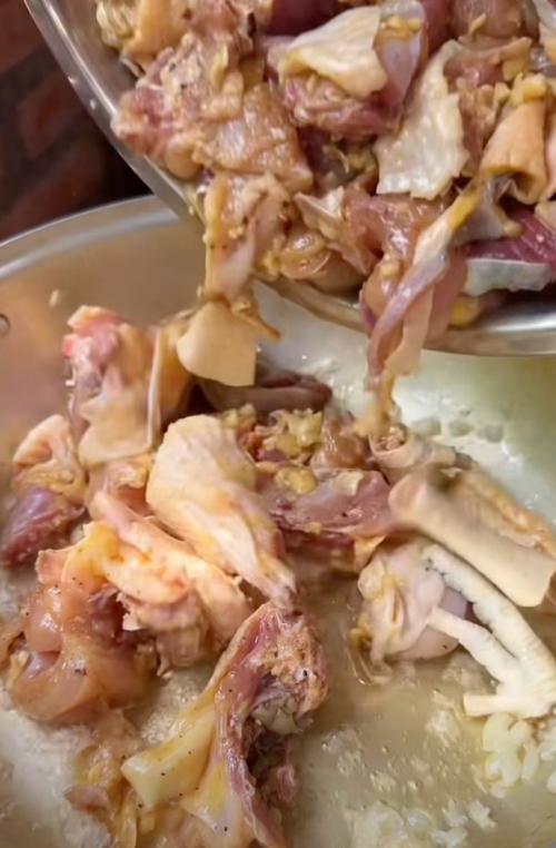 Chị cho biết đặc biệt "nghe nói trong món gà xáo này phải có mắm tôm", ban đầu nghe chồng nói nấu gà cho mắm tôm thì không biết chồng nghe "tai nọ xọ tai kia không". Song với bản tính tò mò thích tìm hiểu nên chị nấu thử.