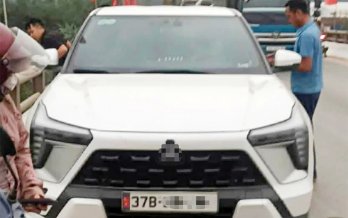 Chiếc ô tô của người phụ nữ bỏ lại trên cầu rồi mất tích. Ảnh: HQ |