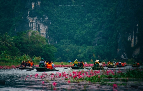 Mùa hoa súng tại Tam Cốc thường bắt đầu từ cuối tháng 10 và kết thúc vào tháng 12, du khách tha hồ lên kế hoạch tận hưởng mùa thu Ninh Bình, ngắm hoa súng giữa trời thu.