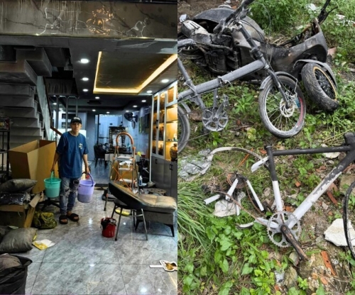 Bà xã Phạm Trưởng cho hay: “Sự cố nhà em sau 1 đêm, cũng may cả nhà bình an. Thiệt hại tài sản nặng nề: Cháy xe điện, xe đạp, nhà hư hết 4 lầu, hư nhiều áo quần, hàng hóa, đồ đạc,...