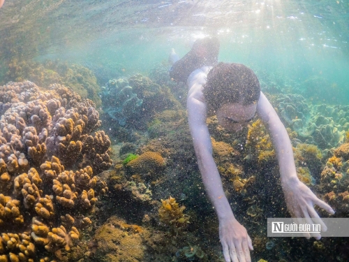 Có những du khách thích thú hòa mình cùng làn nước trong xanh, lặn ngắm san hô cùng nhiều loài động, thực vật đa dạng |