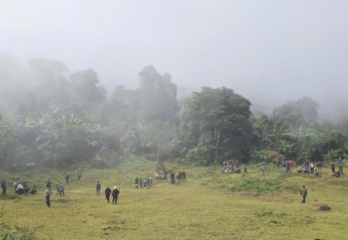 Người dân tập trung đông ở lưng chừng núi để xem |