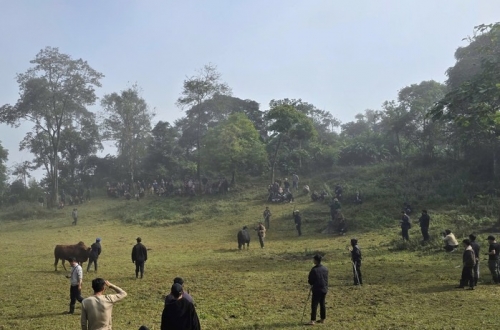 Người dân tập trung đông trước khi diễn trận đấu giữa các con bò chọi |