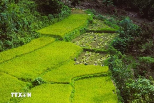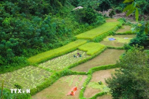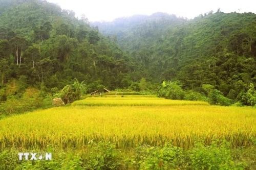 Nhờ những diện tích lúa bậc thang ven suối, an ninh lương thực các bản làng được ổn định. Do đó sức ép đến công tác quản lý, bảo vệ rừng và bảo tồn đa dạng sinh học đối với Khu bảo tồn thiên nhiên Pù Huống đã giảm. (Ảnh: Xuân Tiến/TTXVN) |