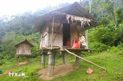 Lúa sau khi được phơi khô sẽ được đồng bào Thái mang về bản cất giữ, bảo quản tại những kho dự trữ nằm tách biệt với ở để sử dụng dần. (Ảnh: Xuân Tiến/TTXVN) |