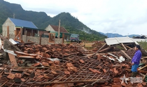 Chiều 5-10, đồng chí Nguyễn Thị Hoài, Chủ tịch UBND xã Thông Thụ (tỉnh Nghệ An) cho biết, trên địa bàn xảy ra mưa to, gió lốc làm đổ sập hoàn toàn hai ngôi nhà kiên cố của các hộ dân, nhiều nhà khác bị tốc mái.