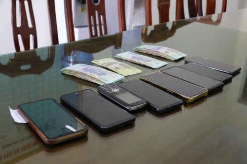Tang vật thu giữ gồm hơn 90 triệu đồng, 02 bộ bài tú lơ khơ, 07 camera... Khám xét khẩn cấp tại nhà của Nguyễn Văn Anh, cơ quan Công an thu giữ thêm 06 cối pháo hoa nổ loại 49 quả có tổng khối lượng 10,38 kg.