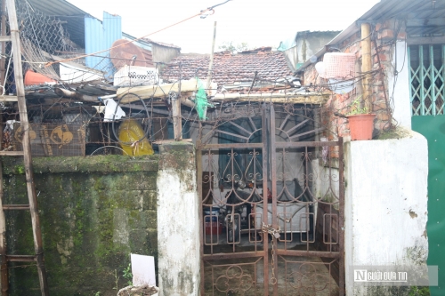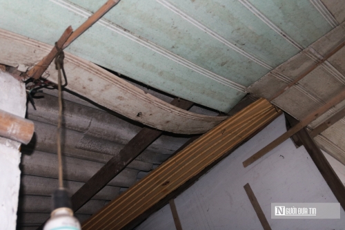 Theo ghi nhận của PV, nhìn từ xa, khu tập thể công nhân Cọc Sợi, phường Trường Vinh, tỉnh Nghệ An như “tấm áo chắp vá” giữa lòng đô thị. Những mái tôn cũ kỹ, vách fibro ximăng lụp xụp, chen chúc nhau bên con đường nhỏ. Thậm chí, nhiều hộ gia đình phải lấy bạt che tạm mái dột, hoặc dựng thêm cột gỗ để chống sập. |