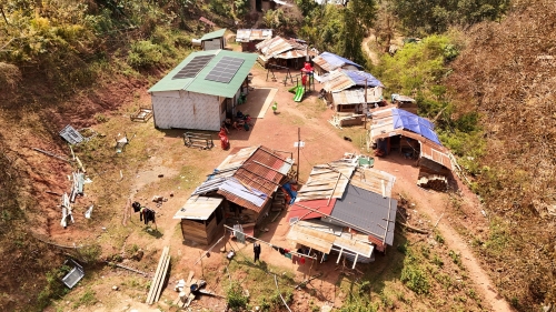 Những ngày cuối tháng 3/2026, sau quãng đường dài chúng tôi đã có mặt tại bản Cha Nga, xã Mỹ Lý (Nghệ An). Khung cảnh nơi đây vẫn đang trong tình trạng tạm bợ. Những căn nhà kiên cố ngày nào đã bị nước lũ cuốn trôi, thay vào đó là những chòi tạm dựng vội bằng tre, gỗ nhặt lại, bên ngoài được phủ bạt nhựa đơn sơ.
