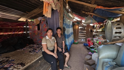 Chị Lương Thị Dung (SN 1987) cho biết, trận lũ năm ngoái quét hết nhà cửa, tài sản... Bây giờ cả nhà phải sống trong chòi tạm.