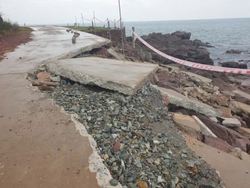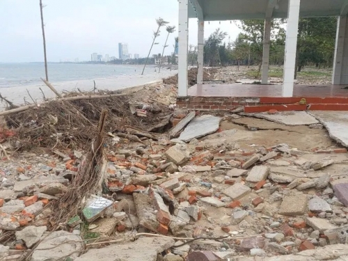 Kè biển tại xã Hải Lộc tan hoang sau bão |