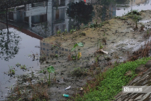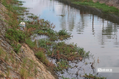 Dưới lòng kênh, rác thải sinh hoạt, bùn đất và cỏ dại kết thành từng mảng lớn, cản trở dòng chảy. Bùn đất bồi lắng, rác thải ùn ứ khiến dòng chảy tắc nghẽn, nhiều đoạn mọc um tùm cỏ dại và rau muống che kín mặt kênh. Những nơi không có cỏ thì nước đặc quánh, nổi váng đen sì, mùi hôi bốc lên nồng nặc, ảnh hưởng nghiêm trọng đến cuộc sống người dân. |