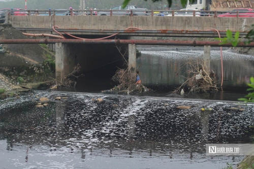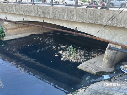 Theo ghi nhận của phóng viên, mấy ngày nay, dọc tuyến Nguyễn Sỹ Sách – Phùng Chí Kiên, dòng nước trong kênh Bắc đen kịt, đặc quánh, nhiều đoạn nổi váng, sủi bọt và bốc mùi tanh nồng nặc |