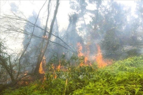 Diện tích cháy thuộc rừng sản xuất, chủ yếu là cây thông và keo. Ảnh: TTXVN phát |