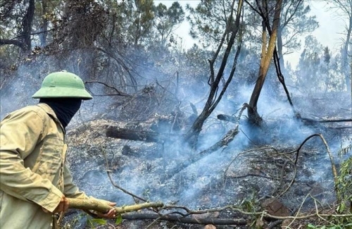 Quá trình tiếp cận hiện trường của các lực lượng tham gia chữa cháy gặp nhiều khó khăn do điều kiện thời tiết nắng nóng gay gắt, hanh khô, gió biển thổi mạnh, địa hình khu vực xảy ra cháy là đồi núi, dốc. Nhờ thực hiện tốt phương châm 4 tại chỗ, sự nỗ lực của các lực lượng, công tác chữa cháy rừng được triển khai hiệu quả, kịp thời. Đến hơn 14 giờ cùng ngày, vụ cháy được khống chế và dập tắt. Thống kê ban đầu, hơn 500m2 diện tích rừng bị cháy.