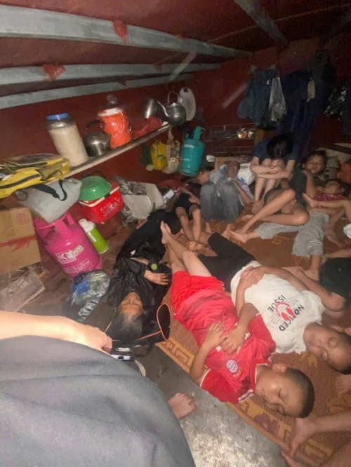 Người dân trú tạm trên thuyền, ngủ qua đêm giữa lũ dữ |