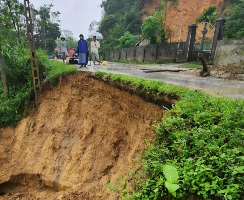 Sạt lở đường liên xã tại địa bàn xã Tri Lễ.  |