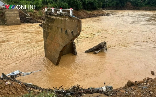Tại xã Yên Hoà, tỉnh Nghệ An, dù trận lũ lịch sử đã đi qua một thời gian, nhưng dấu tích nặng nề vẫn còn đó. Đặc biệt, cây cầu bê tông Trung Thắng kiên cố bắc qua sông nối tuyến đường Trung Thắng - Bản Tạt đã bị đứt gãy hoàn toàn, chỉ còn lại những mố cầu trơ trọi.