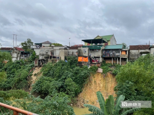 Ông Hoàng Văn Đon - Khối trưởng khối Sa Nam - dẫn chúng tôi đến các hộ gia đình bị sạt lở. Theo ghi nhận của PV, có một số hộ, các công trình phụ đã bị trôi xuống sông, tường nhà bị nứt hoác trầm trọng. "Năm nay có nhiều cơn bão, đặc biệt là bão số 5 và số 10 ảnh hưởng trực tiếp đến Nghệ An. Nghe thông báo, các hộ xóm Sa Nam liên tục phải di dời, đi tránh bão vì nguy cơ mất an toàn cao. Tuy nhiên, mỗi lần đi tránh bão về, họ càng thêm lo lắng vì tình trạng sạt lở ngày càng nghiêm trọng", ông Đon cho biết. |