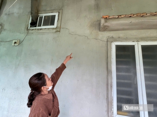 Hiện tại, nền nhà, tường của bà Thành xuất hiện nhiều vết nứt nên gia đình không dám ở lại. Thỉnh thoảng người phụ nữ này ghé nhà để dọn dẹp nhà cửa rồi lại sang nhà người thân tá túc. |