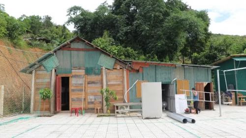 Cán bộ xã Nhôn Mai, tỉnh Nghệ An tự góp kinh phí, chủ động dựng các nhà tạm để ở. |