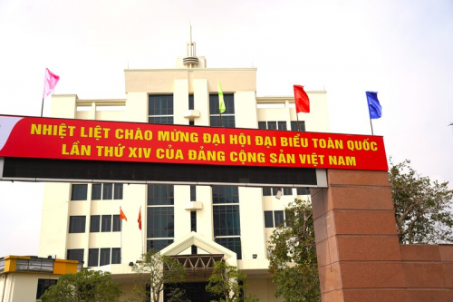 Trụ sở các cơ quan treo băng rôn chào mừng Đại hội Đảng. Ảnh: Mai Liễu |