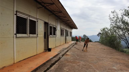 Giáo viên Trường phổ thông dân tộc bán trú tiểu học và trung học cơ sở Nậm Càn chuẩn bị nơi ăn ở cho học sinh. |