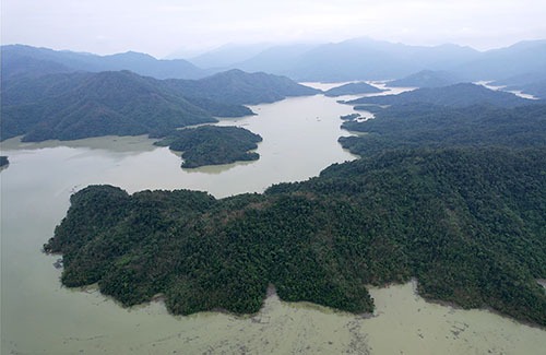 Hồ thủy điện Hủa Na nhìn từ trên cao. |