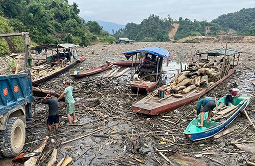 Năm 2025 ghi nhận lượng rác đổ từ thượng nguồn về hồ thủy điện Hủa Na nhiều kỷ lục. |