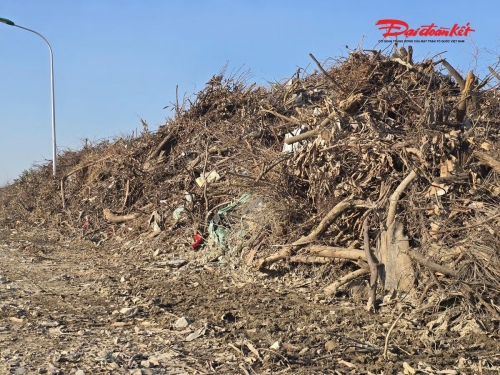 Nguyên nhân dẫn đến tình trạng này, theo ông Phạm Hữu Thắng - Trưởng phòng Tổ chức Hành chính (Công ty Cổ phần Môi trường và Công trình đô thị Nghệ An) giải thích, điểm tập kết trên đường D3 ban đầu chỉ là giải pháp tạm thời sau bão nhằm thu dọn hàng chục nghìn cây xanh bị gãy đổ. Ảnh: ĐB |