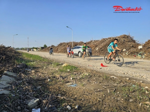 Theo ghi nhận của PV Báo Đại đoàn kết, hai bên tuyến đường D3 la liệt các túi rác sinh hoạt, vật dụng gia đình, cành, lá cây xanh đổ gãy từ sau bão, kéo dài gần hết tuyến. Ảnh: ĐB |