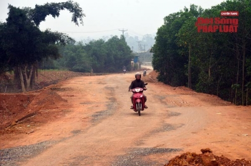 Ngày 16/12, theo ghi nhận của PV, tuyến đường được đổ một lớp đá base mỏng, không thấy máy móc, công nhân thi công trên tuyến đường, hệ thống biển cảnh báo công trường bị đổ ngã mất tác dụng cảnh báo.