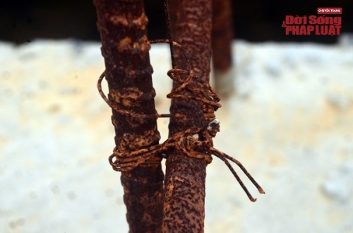 Tình trạng sắt thép gỉ sét mạnh khiến người dân lo ngại chất lượng công trình |