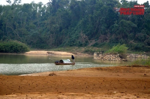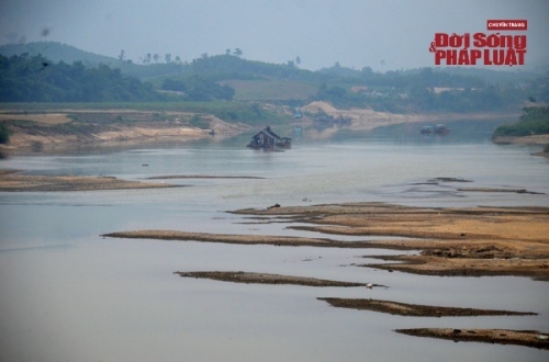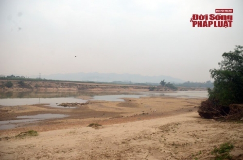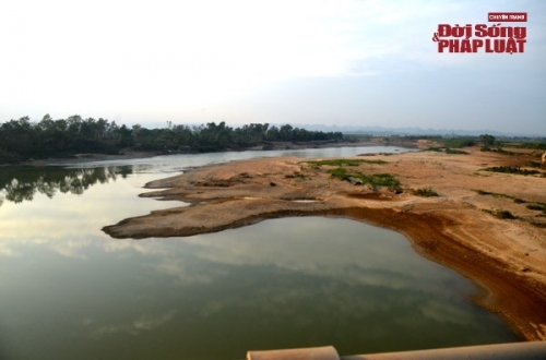Mực nước dưới lòng sông giảm sâu, lòng sông bị thu hẹp xuất hiện nhiều bãi cát bồi rộng lớn giữa lòng sông Con. Có những đoạn sông bị thu hẹp, dòng nước chảy nông, người dân có thể đi bộ sang được |
