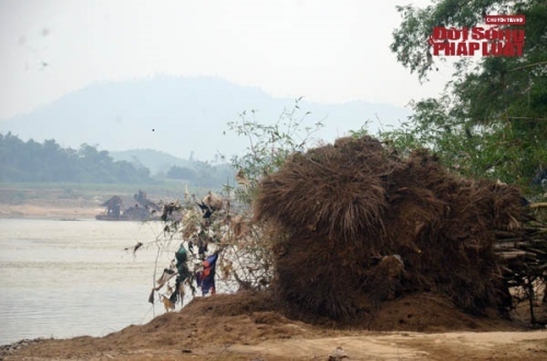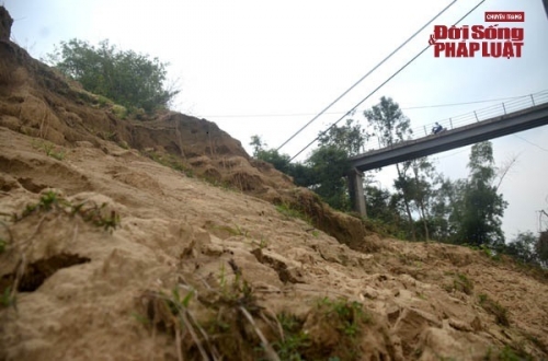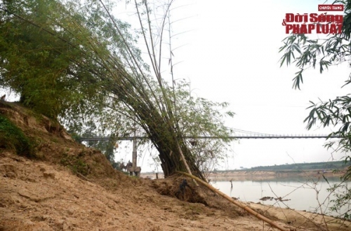 Những bụi tre được trồng giữ đất hai bên bờ cũng đã bị sạt lở, cuốn xuống lòng sông. Hai bên bờ tình trạng sạt lở đất diễn ra nghiêm trọng |