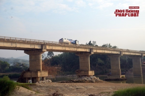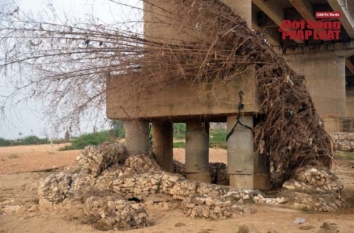 Mực nước xuống thấp để lộ móng những trụ cầu Đò Sen trên đường tỉnh ĐT.545 bắc qua sông Con |