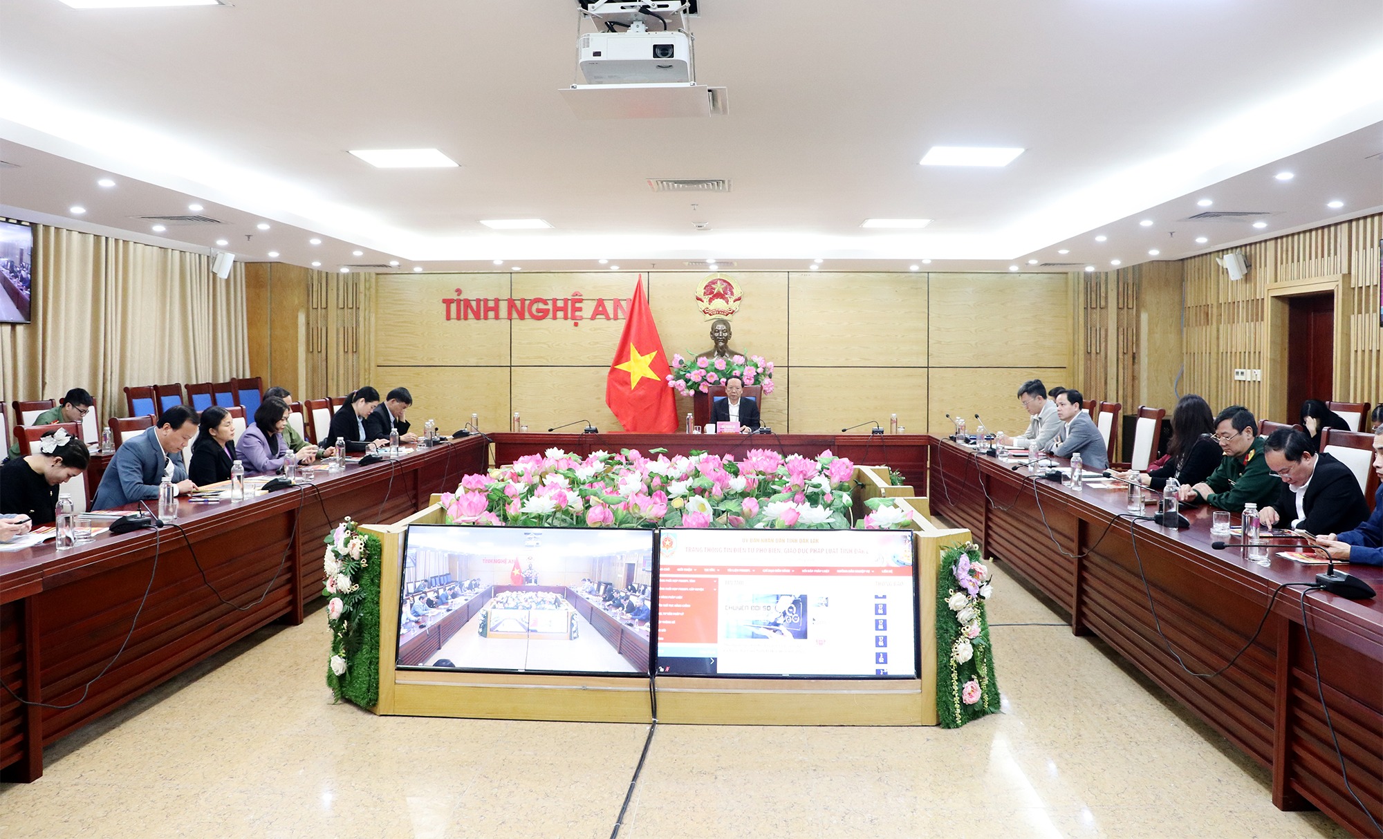 Tại điểm cầu Nghệ An, tham dự có đồng chí Bùi Thanh An - Ủy viên Ban Thường vụ Tỉnh ủy, Phó Chủ tịch Thường trực UBND tỉnh, Chủ tịch Hội đồng phối hợp PBGDPL tỉnh; lãnh đạo các Sở, ngành liên quan.