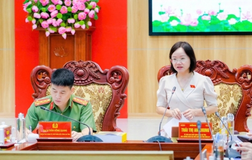 Đồng chí Thái Thị An Chung, Phó trưởng đoàn Đại biểu Quốc hội tỉnh Nghệ An, Đại tá Trần Hồng Quang, Phó Giám đốc Công an tỉnh đồng chủ trì hội thảo.