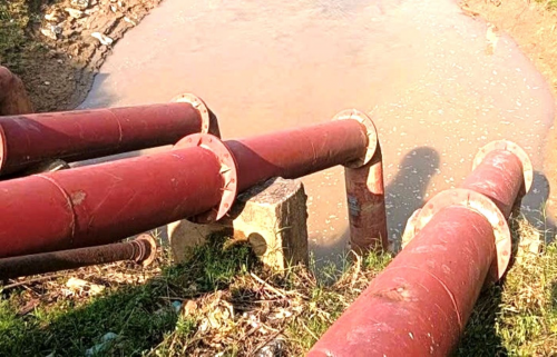 Đường ống dẫn tại trạm bơm Rạng (xã Đại Đồng) không thể hút nước do bồi lấp. |