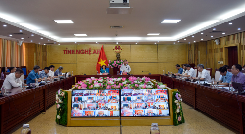 Tham dự hội nghị có lãnh đạo các Sở, ban, ngành. Hội nghị được tổ chức trực tuyến tới điểm cầu các xã, phường.
