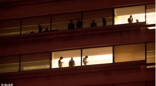 Bức ảnh ghi lại cảnh sinh viên ẩn nấp tại chỗ trong lúc khuôn viên Trường Đại học Brown trong tình trạng phong tỏa. Ảnh: WJAR |