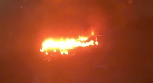 Ngọn lửa bốc cháy dữ dội. Ảnh cắt từ clip |