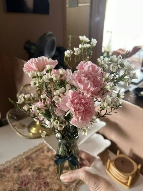 Bình hoa đơn giản vẫn đủ giúp không gian nhà thêm phần sang trọng. Ảnh: FBNV |