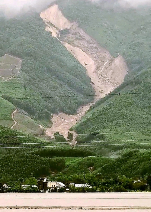 Hình ảnh sạt lở núi dài vài km được người dân xã Thượng Đức chụp lại |