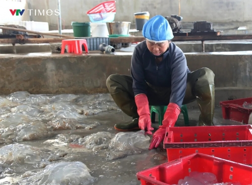 Theo bà Vinh, cơ sở chủ yếu sơ chế phân loại, sứa được xử lý qua nhiều công đoạn như quay ly tâm, làm sạch, loại bỏ tạp chất trước khi đưa ra thị trường. Sản phẩm sứa sau chế biến không chỉ tiêu thụ trong nước mà còn được xuất khẩu sang nước ngoài.