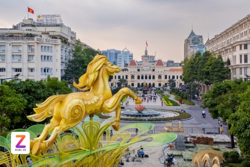 Càng cận Tết Bính Ngọ 2026, "đường đua" linh vật ngựa giữa các tỉnh, thành càng trở nên sôi động. Tại TP.HCM, đại cảnh linh vật ở phố đi bộ Nguyễn Huệ tiếp tục giữ vai trò điểm nhấn của mùa xuân phía Nam. Mô hình ngựa lấy cảm hứng từ hình tượng Thánh Gióng cưỡi ngựa bay về trời, được đặt ở vị trí trung tâm, mang thông điệp về tinh thần bứt phá và khát vọng vươn lên. Tượng cao 11 m (tính cả giá đỡ), có thể cử động đầu và chân. Ảnh: Khương Nguyễn. |