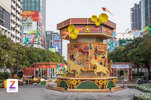 Đường hoa được thiết kế quy mô lớn, kéo dài từ giao lộ Nguyễn Huệ - Lê Lợi đến Nguyễn Huệ - Tôn Đức Thắng, mở cửa phục vụ người dân và du khách từ tối 15/2 đến 22/2 (tức 28 tháng Chạp đến mùng 6 Tết). Phiên bản đường hoa năm nay đánh dấu bước chuyển mình với phiên bản ngày - đêm. Ban ngày, không gian đường hoa rực rỡ sắc màu với hơn 100.000 giỏ hoa đa chủng loại, đại cảnh linh vật ngựa cao lớn cùng nhiều tiểu cảnh kể chuyện văn hóa Tết Việt. Đêm đến, toàn bộ tuyến phố biến thành lễ hội ánh sáng, nghệ thuật với công nghệ chiếu mapping 3D và AR, tạo trải nghiệm thị giác mới lạ cho người tham quan. Ảnh: Khương Nguyễn. |