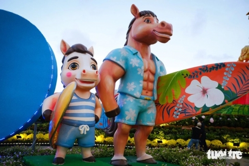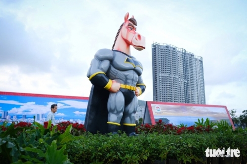 Hình tượng linh vật ngựa "mặt quạu" ngộ nghĩnh đang chiếm sóng tại cụm linh vật xuân Bính Ngọ ở quảng trường Nguyễn Tất Thành, phường Quy Nhơn, Gia Lai - Ảnh: TẤN LỰC |