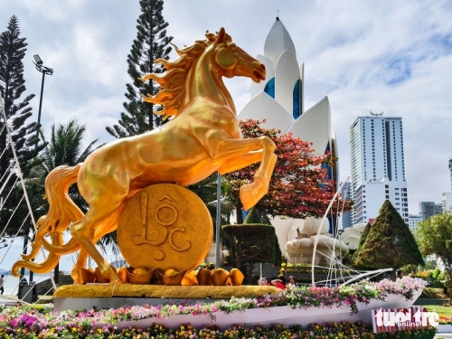Những ngày giáp Tết Bính Ngọ 2026, công trình chào xuân với dàn linh vật ngựa vàng, ngựa bạc ở nhiều điểm công cộng của phố biển Nha Trang đã hoàn thiện và nhanh chóng trở thành điểm đến hút khách.
