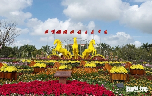 Riêng tại khu vực trung tâm quảng trường ngoài linh vật ngựa thì bố trí không gian hoa xuân với vườn mai bên phải và vườn đào bên trái. Bên cạnh đó là nhiều loài hoa đẹp với đủ sắc màu, trong đó ngộ nghĩnh là những bồn hoa bằng các chú ngựa gỗ.
